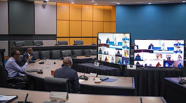 His Excellency Paul KAGAME today chaired another extraordinary Cabinet via video conference to discuss the COVID-19 pandemic and strategies to further contain the outbreak in Rwanda.
