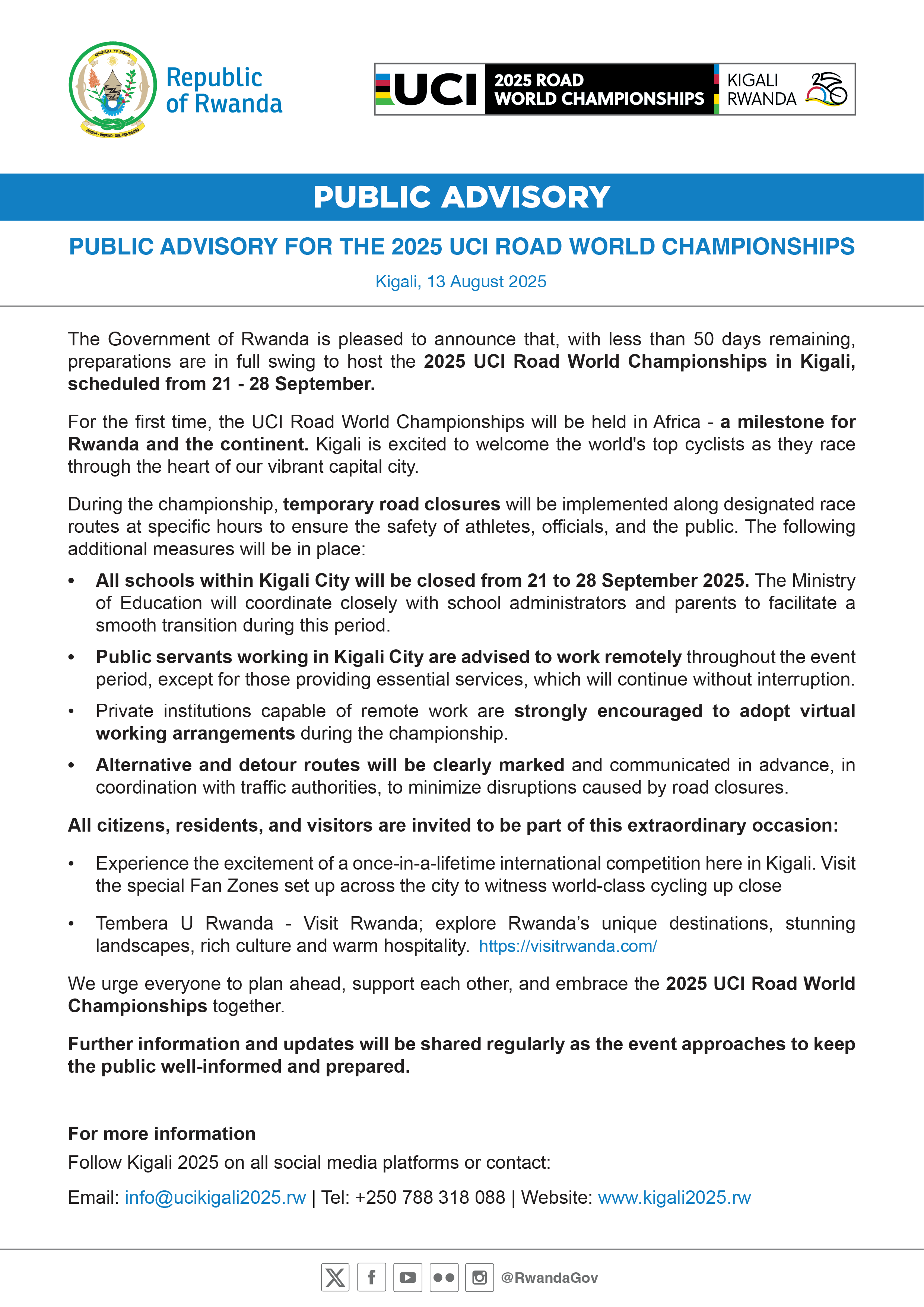 Kigali, 4 September 2020 – The City of Kigali has today launched the 2050 Master Plan. This new vision expresses Kigali’s unique local identity and…